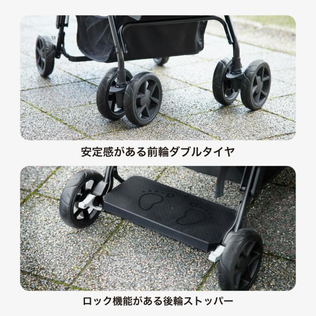 | 商品説明 | ●対象年齢 前席:生後4ヶ月から体重20kgまで 後席:2歳半(生後30ヶ月)から体重20kgまで ●折りたたみ可能 折りたたみサイズ:幅55×厚み31×高さ114cm ●前席、後席共に通気性と座り心地が良い3Dメッシュ生地を使用 ●後席は立っても座っても乗れる2way仕様 ●後席にはしっかり握れるハンドル付き ●前席はリクライニング機能付き(105-135°) ●前席のフットサポートは3段階調節可能 ●大きなホロ付き ●握りやすいレザー調ハンドル ●安定感がある前輪ダブルタイヤ ●お子さまの立ち上がりや転落を防ぐ5点式シートベルト ●テーブルトレイ付き ●取り外し可能なポーチ付き ●座面下には大きな収納カゴ付き |