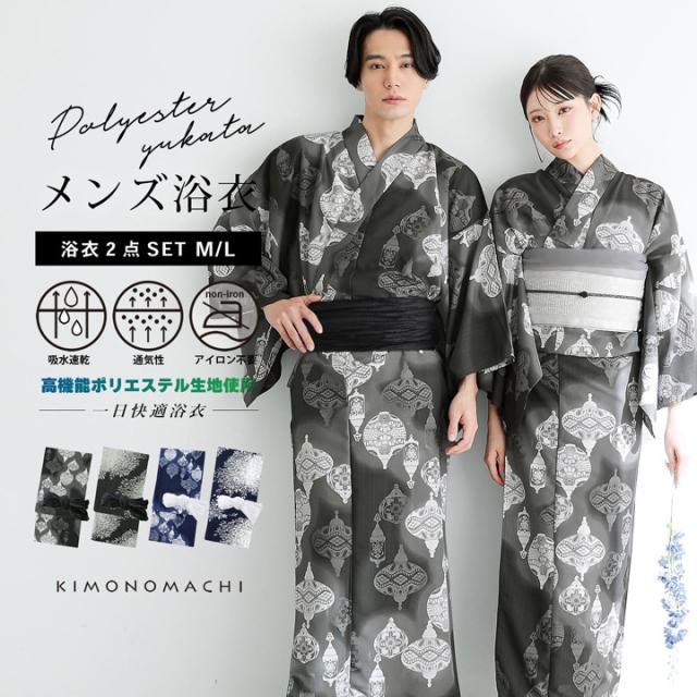 メンズ 浴衣セット 吸水速乾 ポリエステル 兵児帯 へこ帯 蝶々結び 着付け簡単 M L 仕立て上がり KIMONOMACHIオリジナル 男性 男性用 盆踊り 夏着物 ゆかた yukata