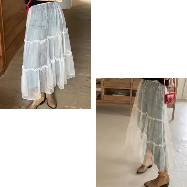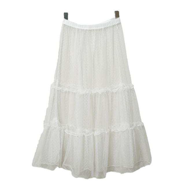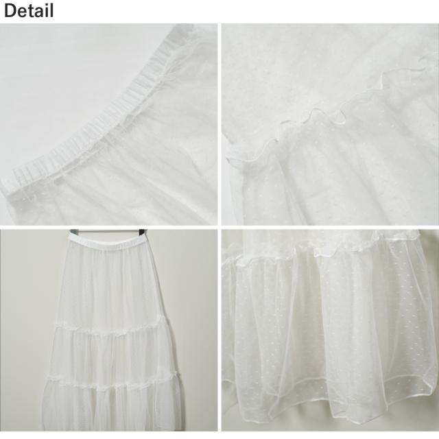 全品送料無料一部除く ドットチュール フリルティアード レイヤードスカート ma 【即納】スカート ロングスカート フレアスカート ウエストゴム 楽ちん シアー シースルー ドット 水玉 レディース 韓国 Y2Kファッション 韓国ストリート 流行り トレンド かわいい