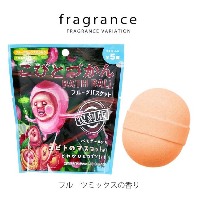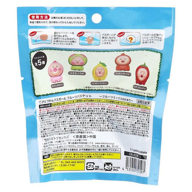 こびとづかん バスボール フルーツバスケット復刻版 フルーツミックス お風呂玉 マスコット入り入浴剤 発泡タイプ ( ob-kob-3-1 ) 大人気絵本 こびと図鑑 単品 マスコット バスボム おもちゃ キッズ 子供 グッズ プチギフト バス用品 おふろ お風呂 リラックス