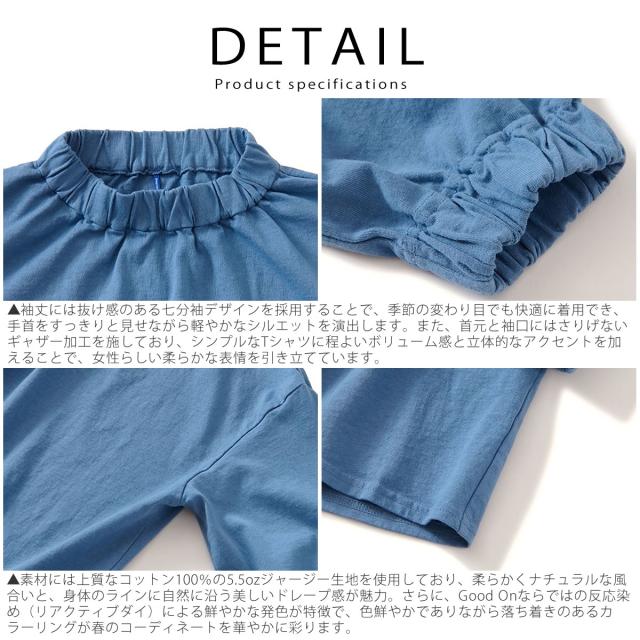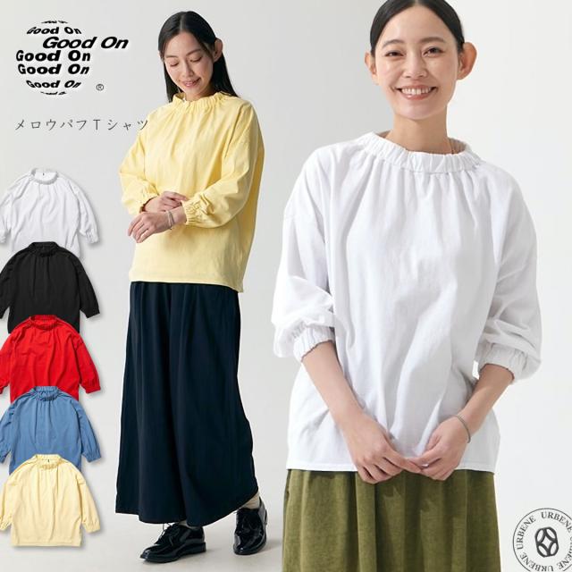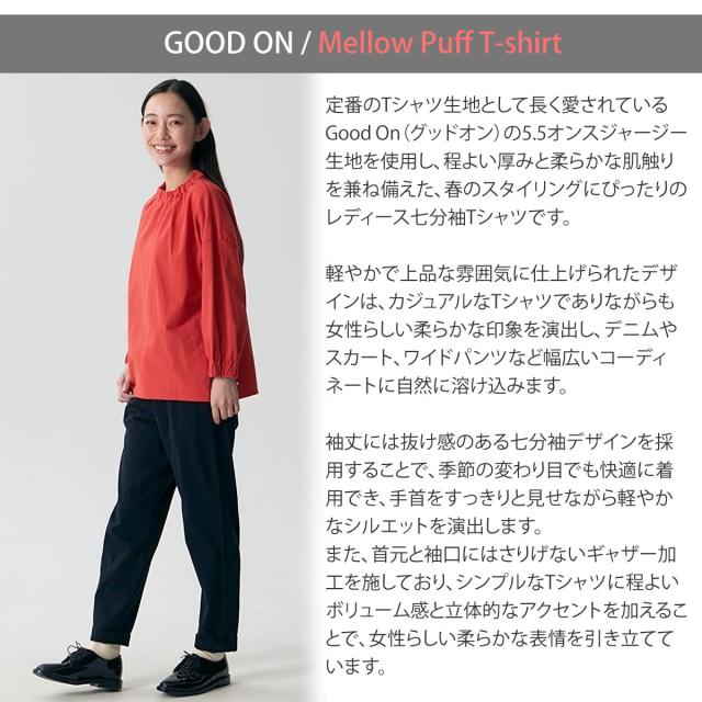 【 WOMENS 】GOOD ON グッドオン メロウパフTシャツ 七分袖 ギャザー Tシャツ レディース 5.5oz コットン ジャージー カットソー ( GOLT2602 ) 7分袖 春トップス 無地 綿100% 日本製 カジュアル シンプル 春夏 おしゃれ かわいい ウィメンズ アメカジ シンプル アーベン