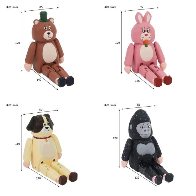 クマ、ウサギ、イヌ、ゴリラの動物モチーフで、まるで遊園地から抜け出してきたようなユニークなデザイン。