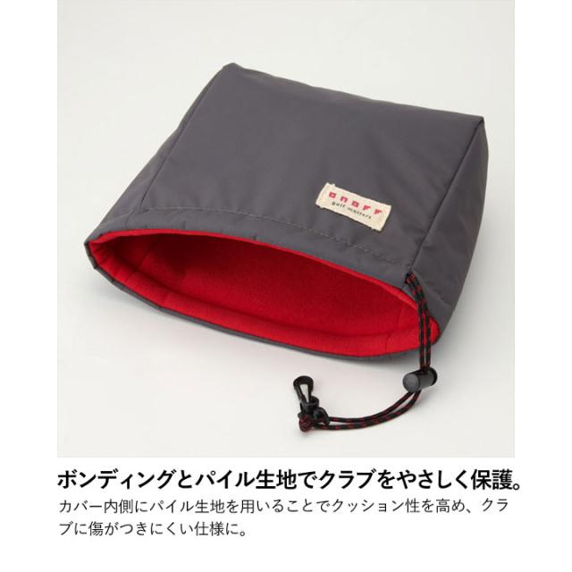 ONOFFナイロンツイルシリーズのアイアンカバー。軽量のナイロンツイル素材の裏地に綿をボンディングした、カジュアルで柔らかなデザイン。アイアンをまとめて収納することで、他のクラブと当たって傷つくのを防ぎ、バッグの中でも安定して収納できます。キャディバッグ、トートバッグなどツイルシリーズでのカラーコーディネートがおすすめです。