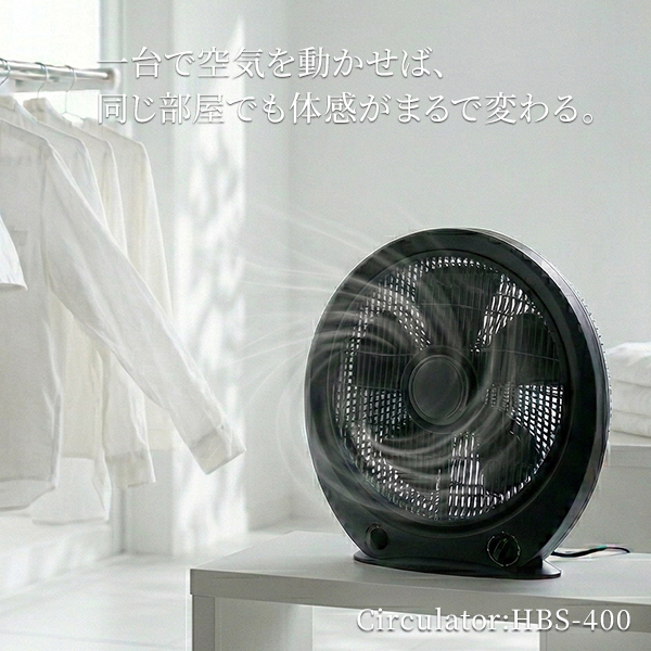 【風をかき混ぜる】サーキュレーター 攪拌ガード回転 薄型 奥行13cm 風量3段階 タイマー付き 部屋干し 空気循環 エアコン併用 省スペース 送風機 かくはん HBS-400