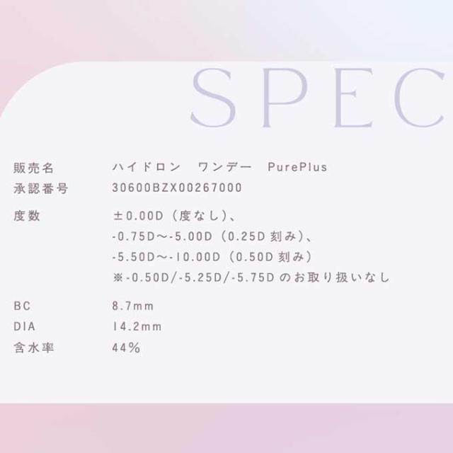 【スペック】 ■販売名:ハイドロン ワンデー PurePlus