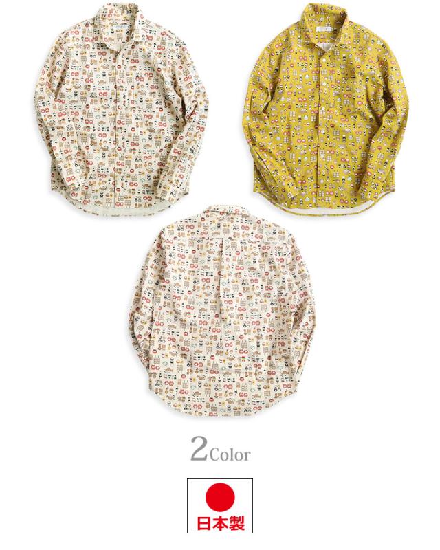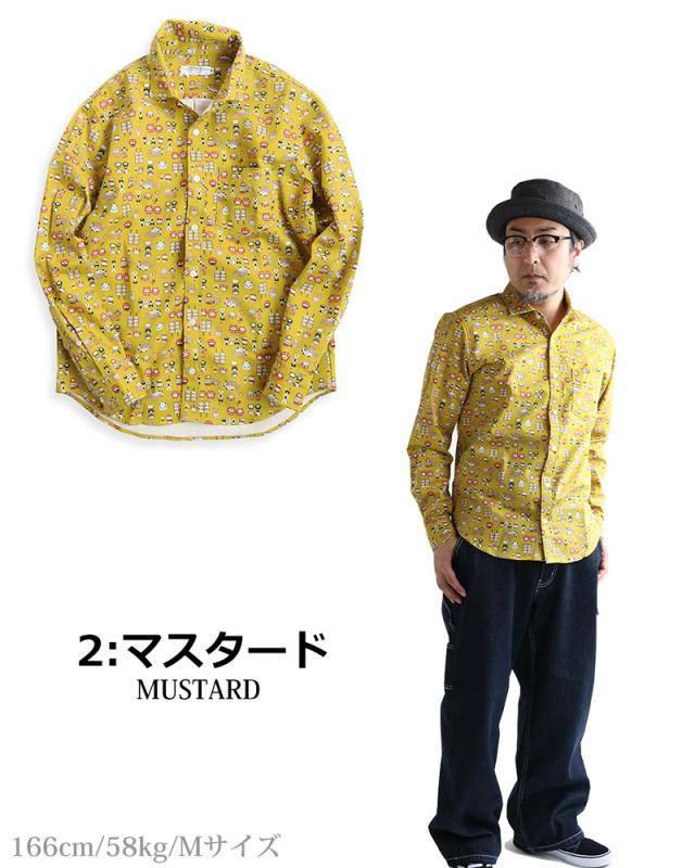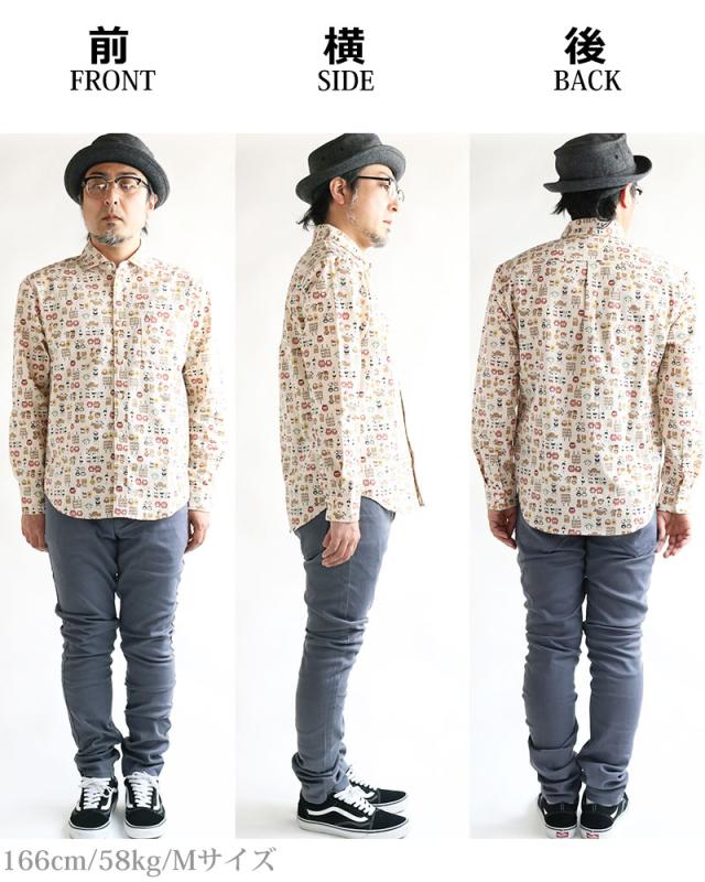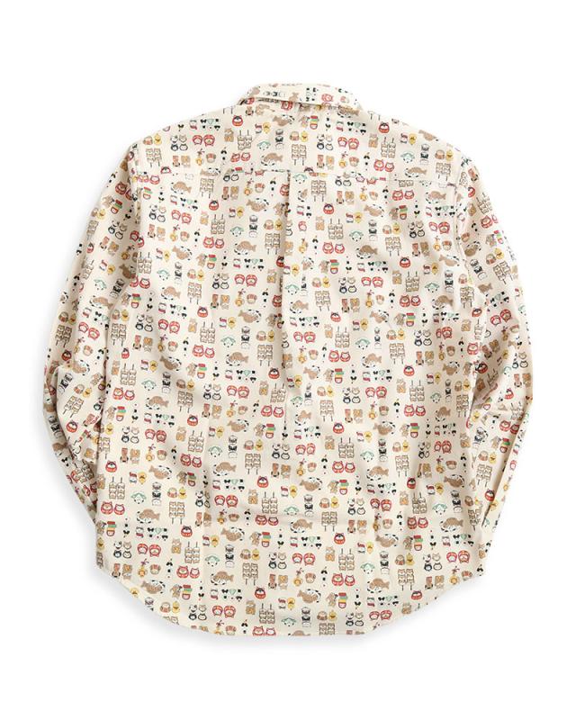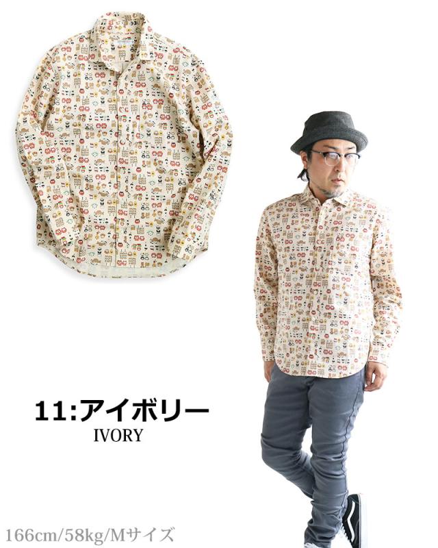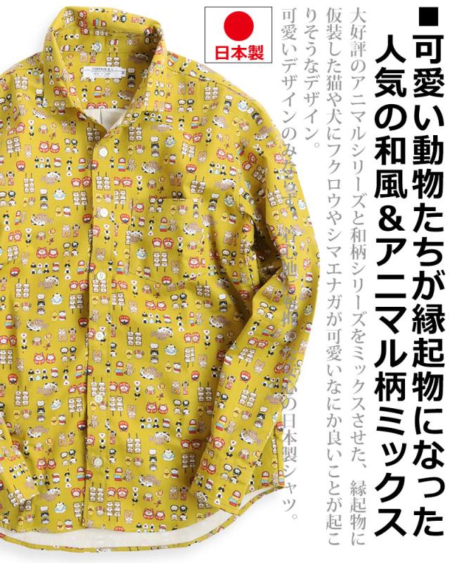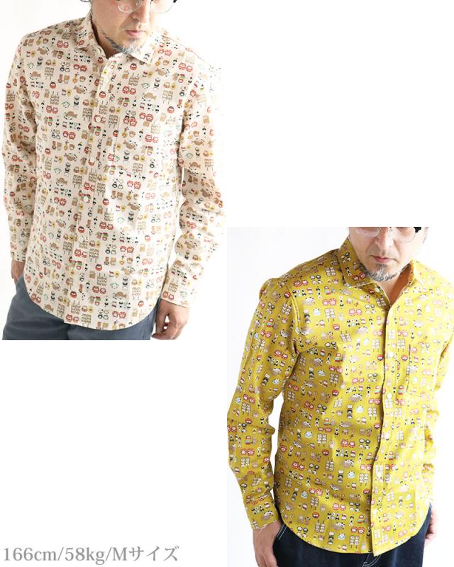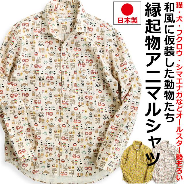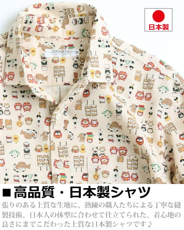 VINTAGE EL 縁起物 和風 アニマル柄 長袖シャツ メンズ 柄シャツ 動物柄 ネコ柄 和柄 ねこ柄 犬柄 いぬ柄 イヌ柄 フクロウ柄 シマエナガ 日本製