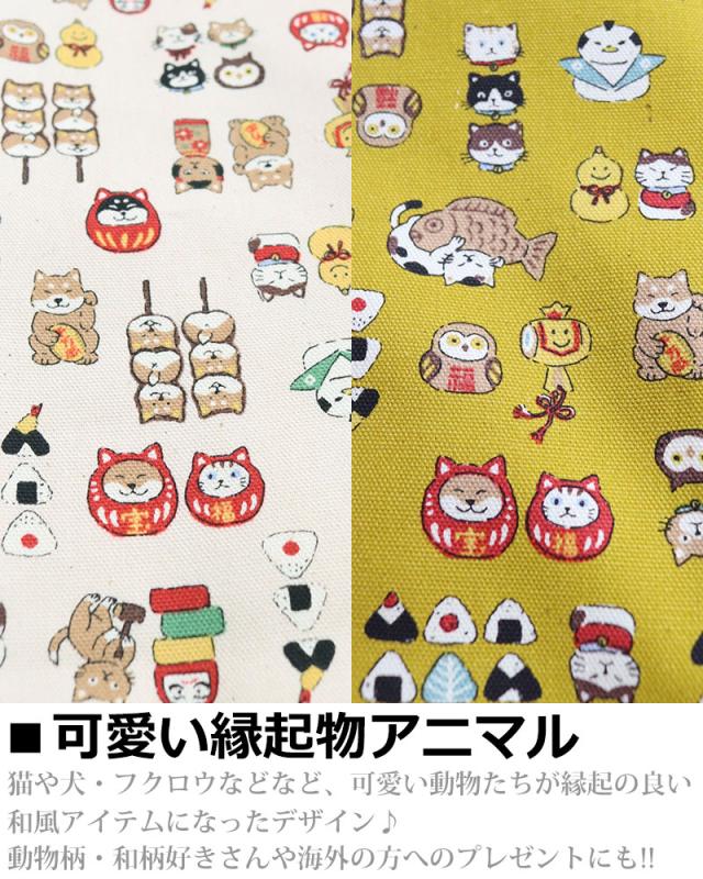 当店人気のアニマル柄シリーズと和柄シリーズから、ダルマなどの縁起物に扮した動物たちが可愛いデザイン