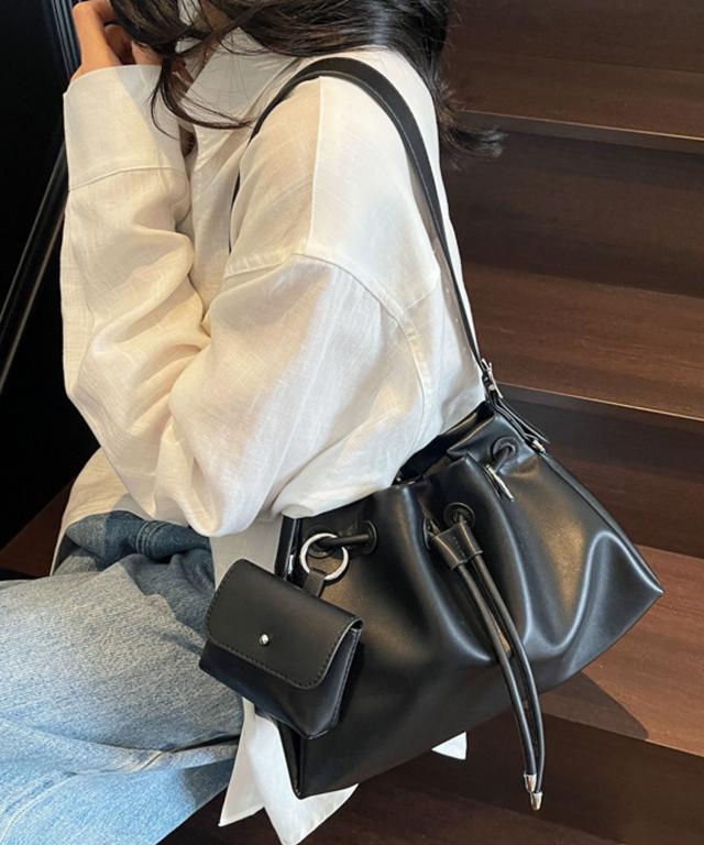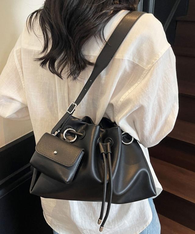 ショルダーバッグ レディース 2way 斜めがけ おしゃれ 小さめ 斜めがけバッグ カジュアル 通勤 斜め掛け 旅行 合皮 シンプル 大人 ポーチ カラビナ リング付 通学 PUレザー ドロスト ワンハンドル バッグ ショルダー バック 巾着 黒 普段使い きれいめ かわいい 可愛い