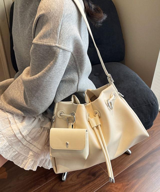 肌触り滑らかなスムースPUレザーに、ポーチ&キーリングを組み合わせたおしゃれなショルダーバッグ♪