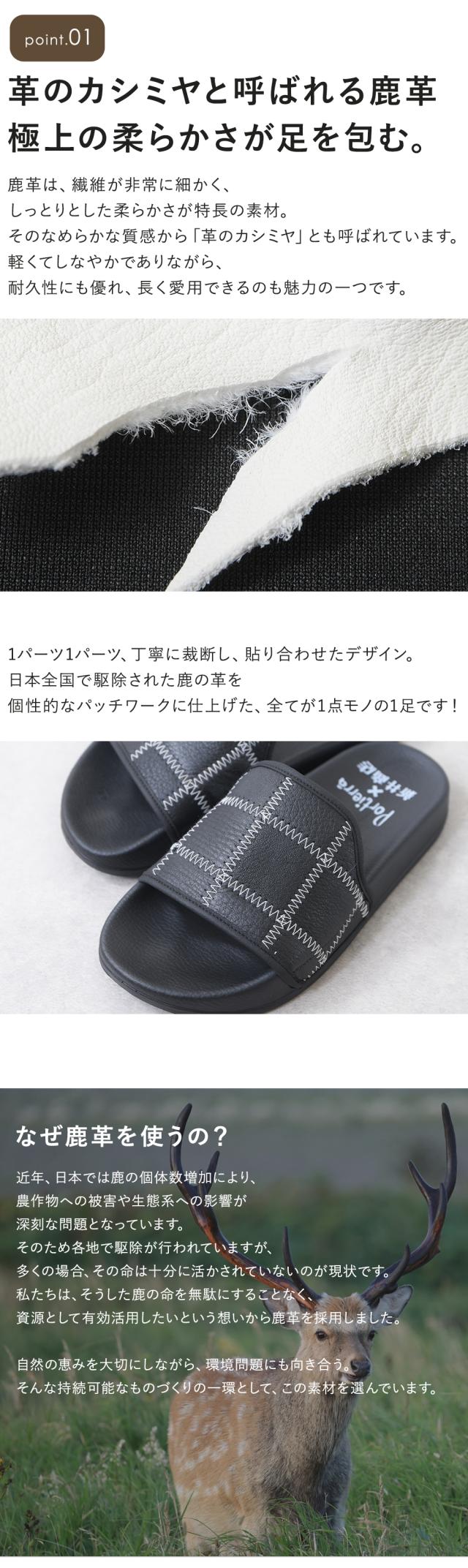 サンダル レディース メンズ 4E 本革 鹿革 ジビエ makuake マクアケ ローヒール ぺたんこ ペタンコ つっかけ かかとなし 歩きやすい 痛くない 柔らかい 脱げない 疲れない 軽量 軽い おしゃれ かわいい 靴 日本製 国産 黒 ブラック 白 ホワイト