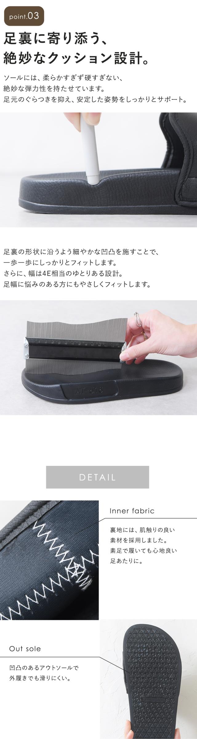 足に優しい4E設計で、外反母趾や幅広の方でもゆったり履ける。