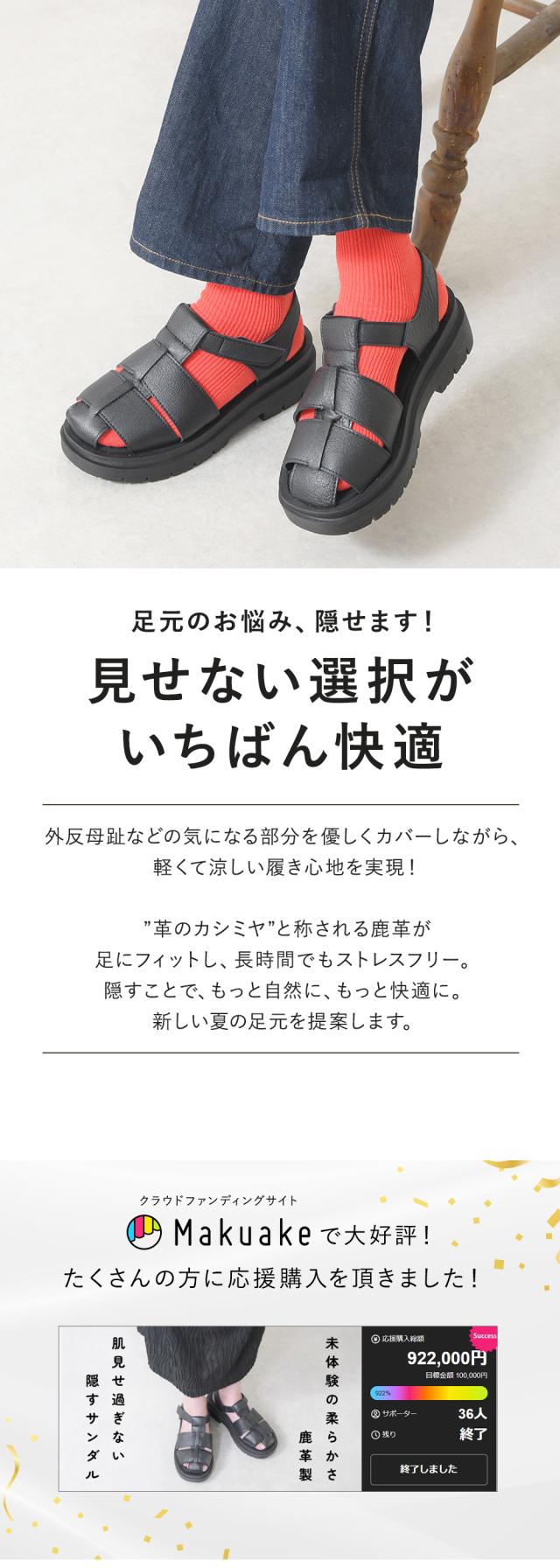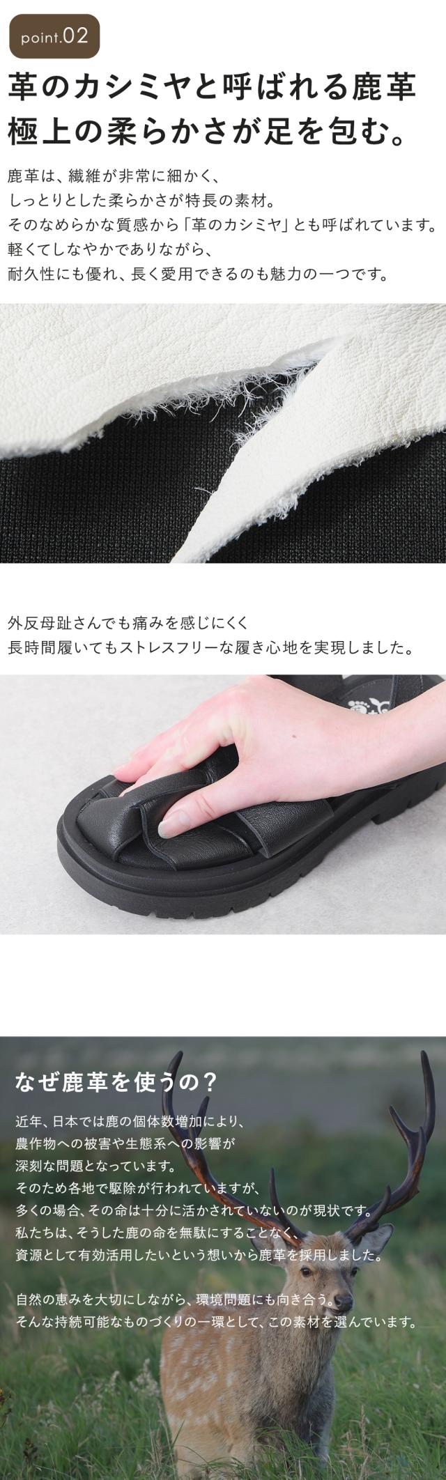 サンダル レディース グルカサンダル 4E 本革 鹿革 ジビエ makuake マクアケ ストラップ 厚底 歩きやすい 痛くない 柔らかい 脱げない 疲れない 軽量 軽い おしゃれ かわいい 靴 日本製 国産 黒 ブラック 白 ホワイト