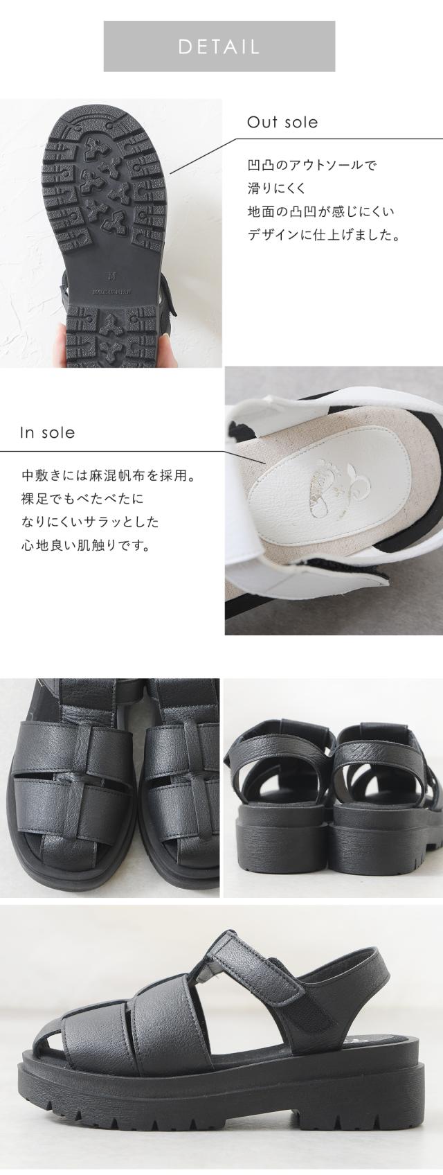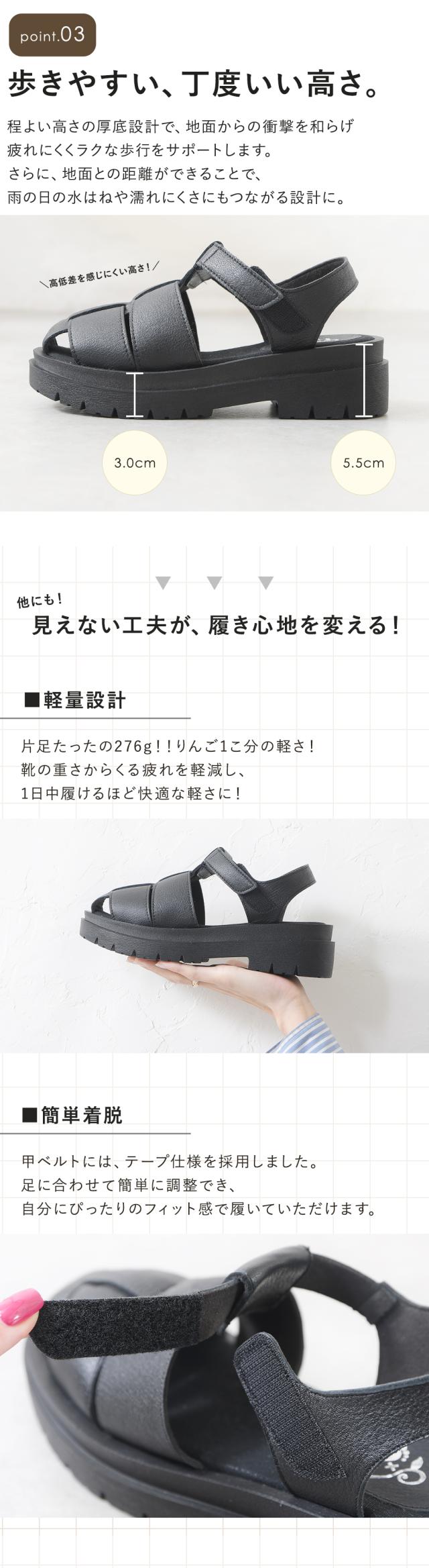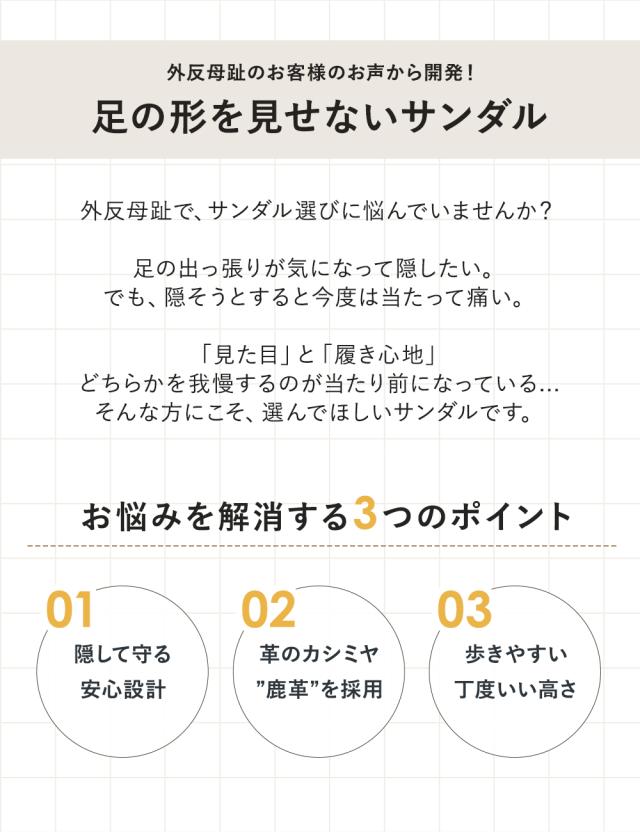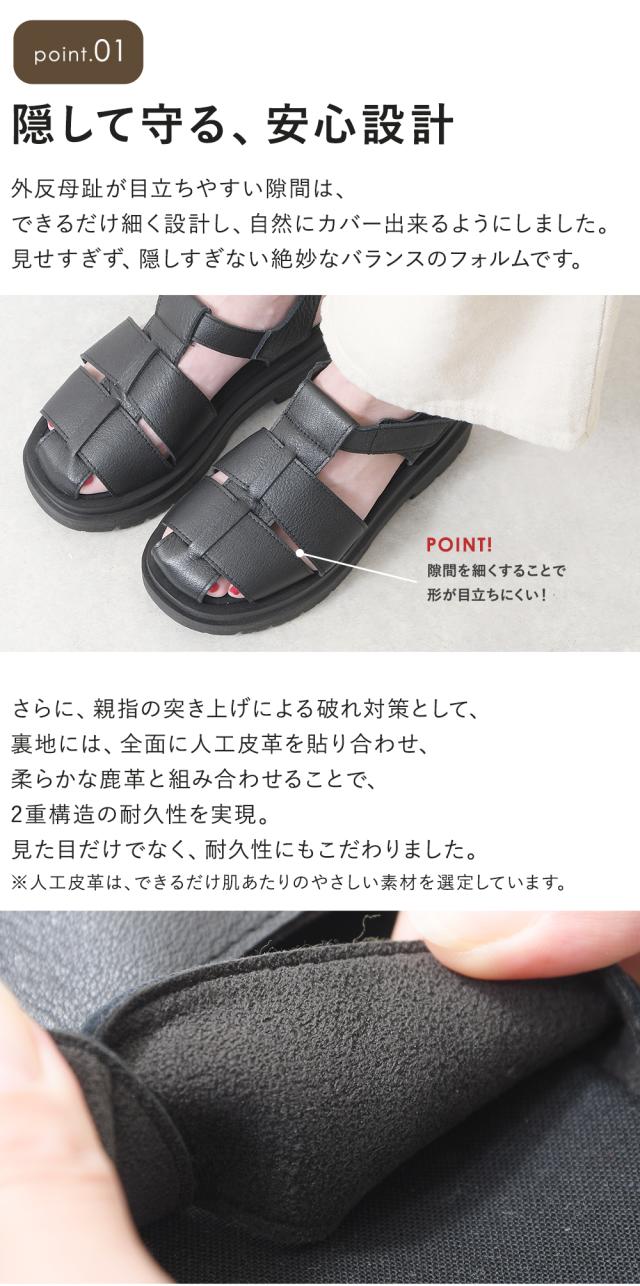 つま先隠れるグルカサンダルデザインで、外反母趾が目立ちやすい隙間も細く設計。