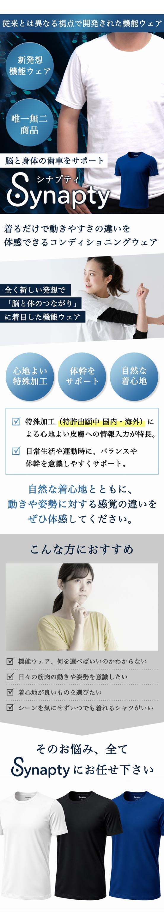Synapty(シナプティ)は、「脳と身体のつながり」に着目した新しい発想のウェアです。