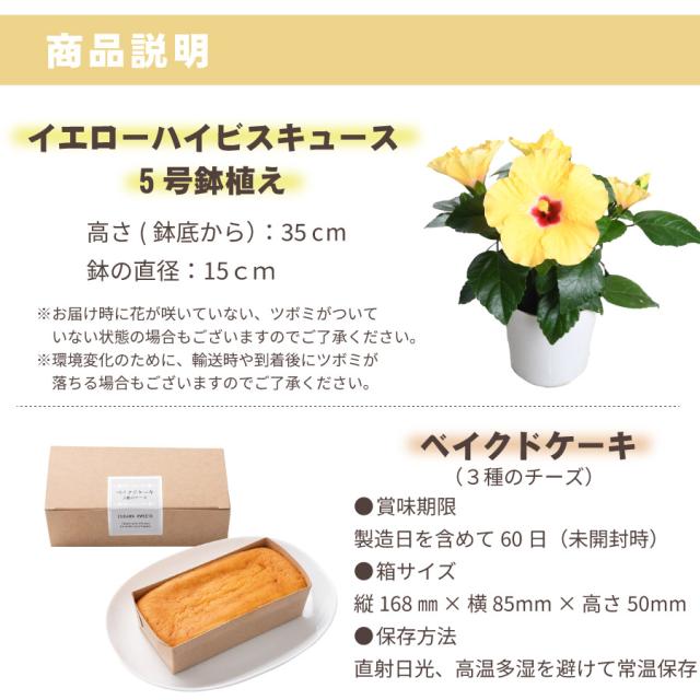 父の日 ギフト プレゼント ロングライフ ハイビスキュース ハイビスカスイエロー 5号鉢 とスイーツのセット 深川カントリーファーム 3種のチーズ ベイクドケーキ 2026
