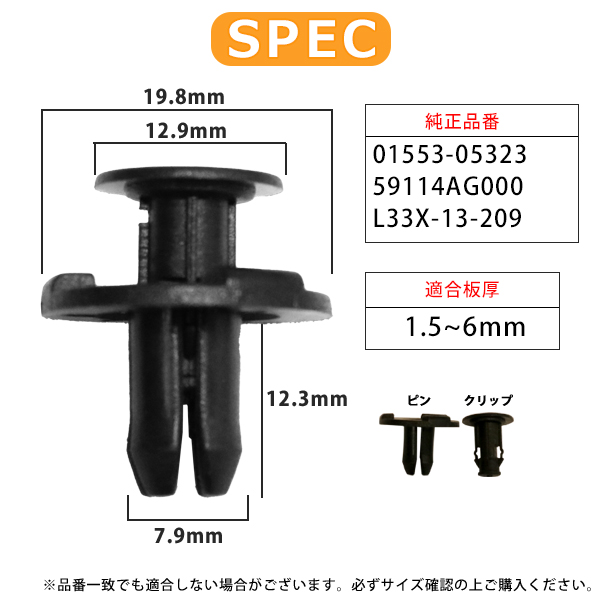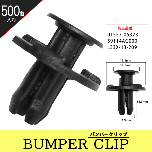 バンパークリップ リベット 日産 スバル マツダ 500個 バンパー グリル アンダーカバー 01553-05323 59114AG000 L33X-13-209 【CP9-500】