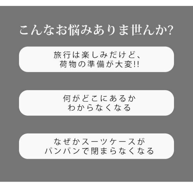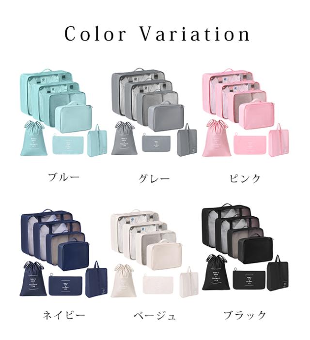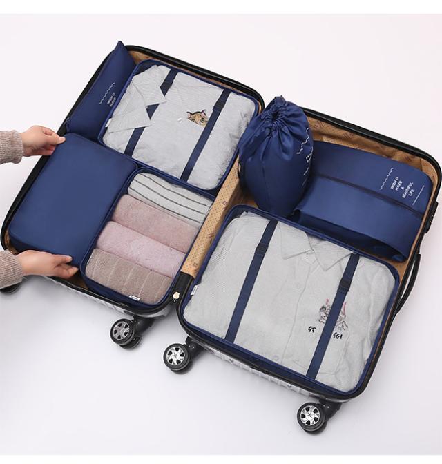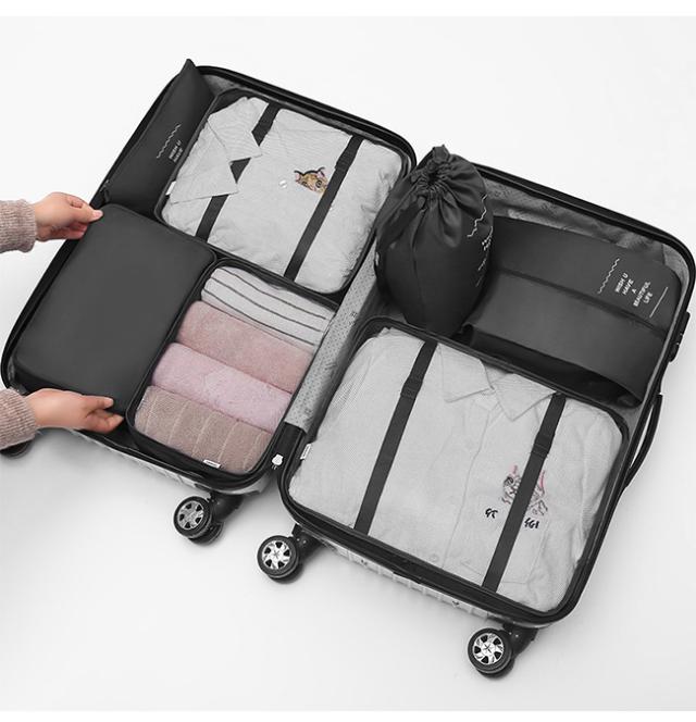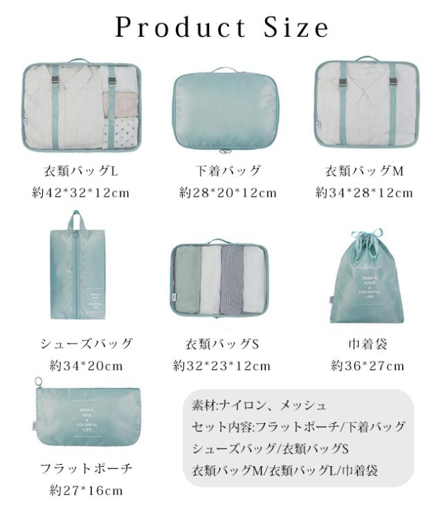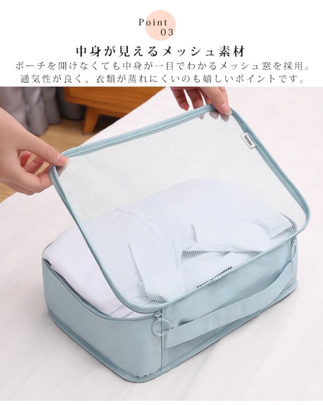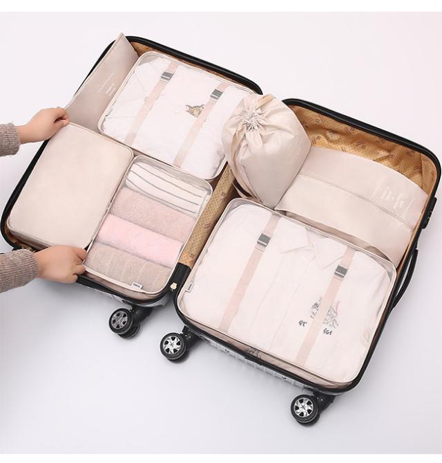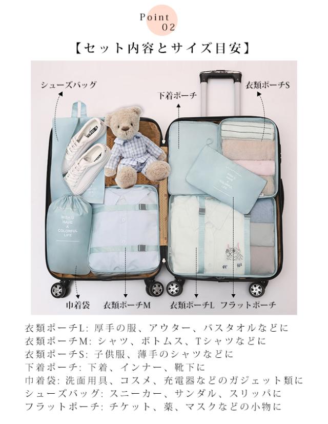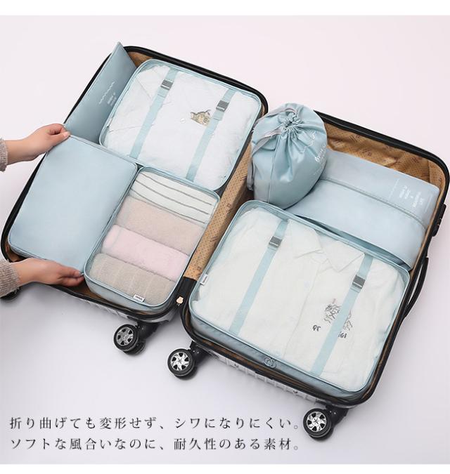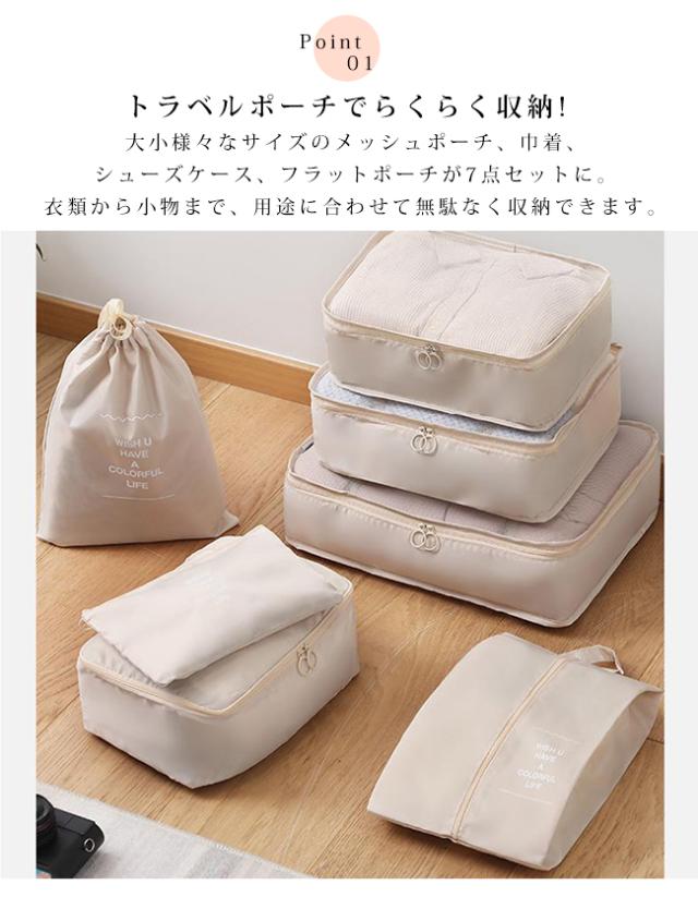 スーツケースの中身を美しく整理整頓できる、大人気トラベルポーチ7点セットです。