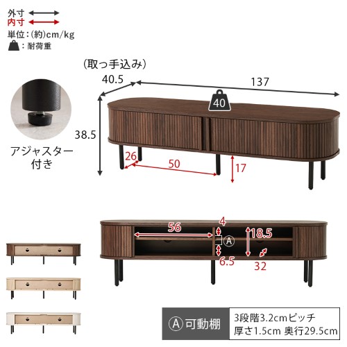 | サイズ(cm) | (約)幅137×奥行40.5×高さ38.5cm |