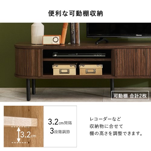 | 【商品紹介】 縦のラインとサイドの曲線が美しいタンブール扉のテレビ台。扉の開閉に場所を取らず、すっきりとした脚高デザインもポイントです。ローボードとしても使用可能 |
