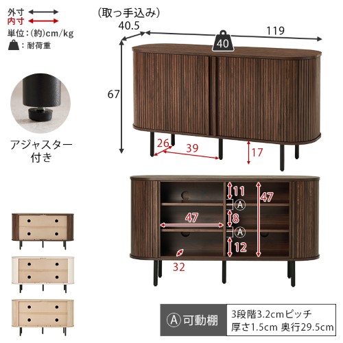 | サイズ(cm) | (約)幅119×奥行40.5×高さ67cm |