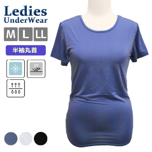 レディース 新栄 The接触冷感 半袖丸首 29-661 送料無料 単品 シャツ 吸汗速乾 UVカット 春 夏 無地 肌着 下着(07038)