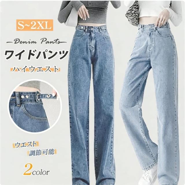 ワイドパンツ デニム レディース ジーンズ ハイウエスト ウエスト調節可能 デニムパンツ 春夏 きれいめパンツ 大きいサイズ 脚長効果 着痩せ おしゃれ