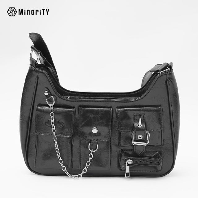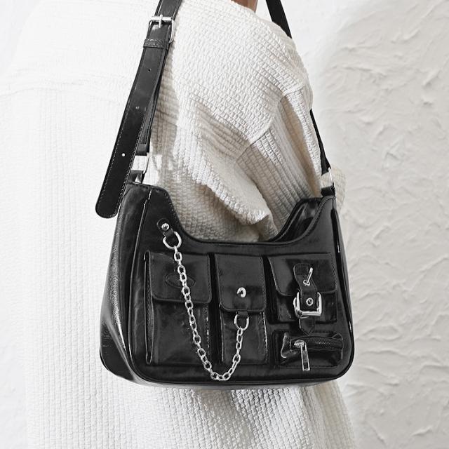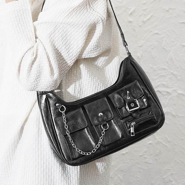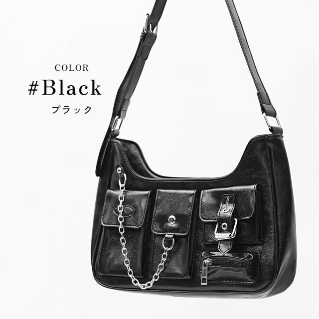 「モダンに使えるモードなバッグ」ユーティリティチェーンショルダーバッグ【ユーティリティチェーンPUレザーショルダーバッグ】