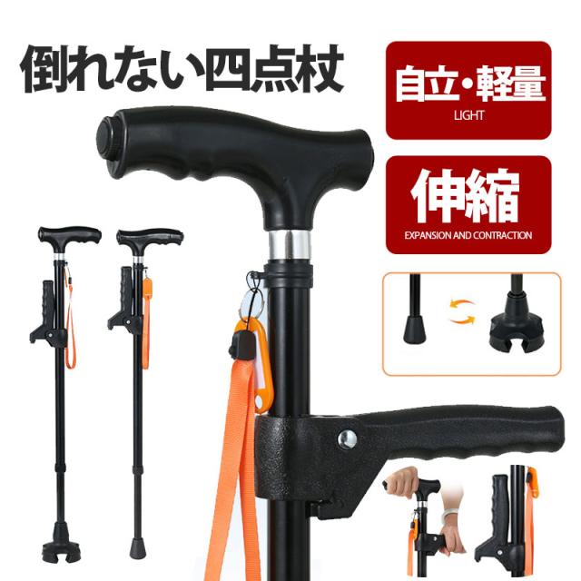 杖 自立式 四点杖 4点杖 自立杖 つえ 介護 自立 軽量 伸縮 歩行補助 長さ調節 高齢者 柄杖伸縮型 敬老の日 母の日 誕生日
