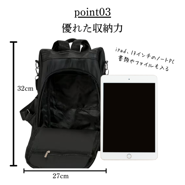 ・iPadや13インチPCも収納可能