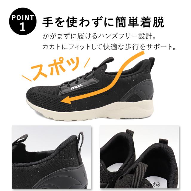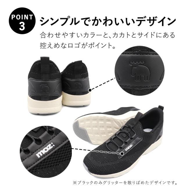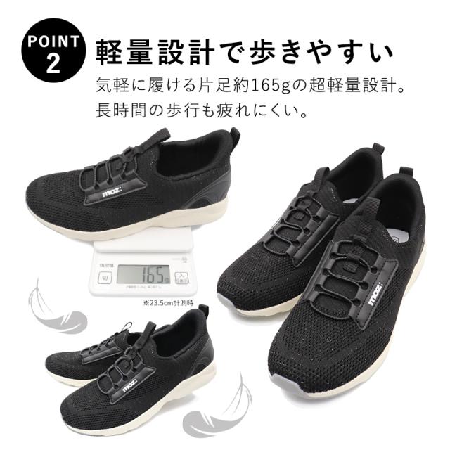レディース スニーカー スリッポン 軽量 歩きやすい MZ3031 moz モズ 靴 ニット 黒 ウォーキング 通気性