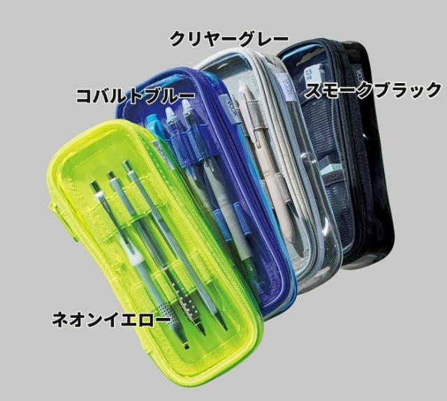 XCOA エクスコア クリアペンケース A3810 4色 1900円 ファスナー式 リヒトラブ 透明 文具小物収納 筆箱 ネオンイエロー コバルトブルー クリヤーグレー スモークブラック