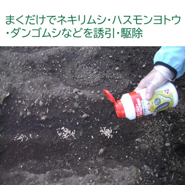 ・まくだけでネキリムシ類、ハスモンヨトウやダンゴムシなどを誘引し、食べさせて退治する薬剤です。