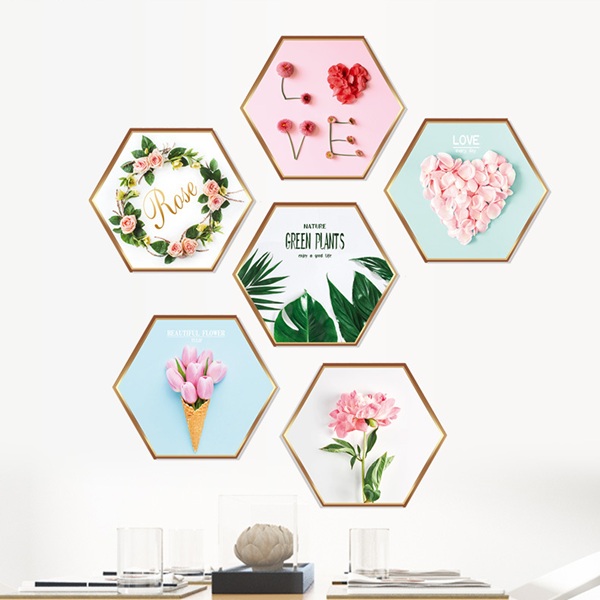 ウォールステッカー 六角形 フレーム はがせる 壁紙シール 薔薇 チューリップ 葉っぱ ハート 緑 ピンク リビング 傷隠し 女の子 送料無料