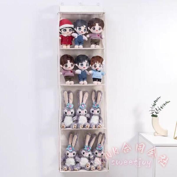 ぬいぐるみ透明ウォールポケット 4/5段 KNK(株) ディスプレイ コレクション収納 透明つっぱり式 壁面収納 見せる収納 ドア掛け式 小物整理 ぬい活 推し活に便利