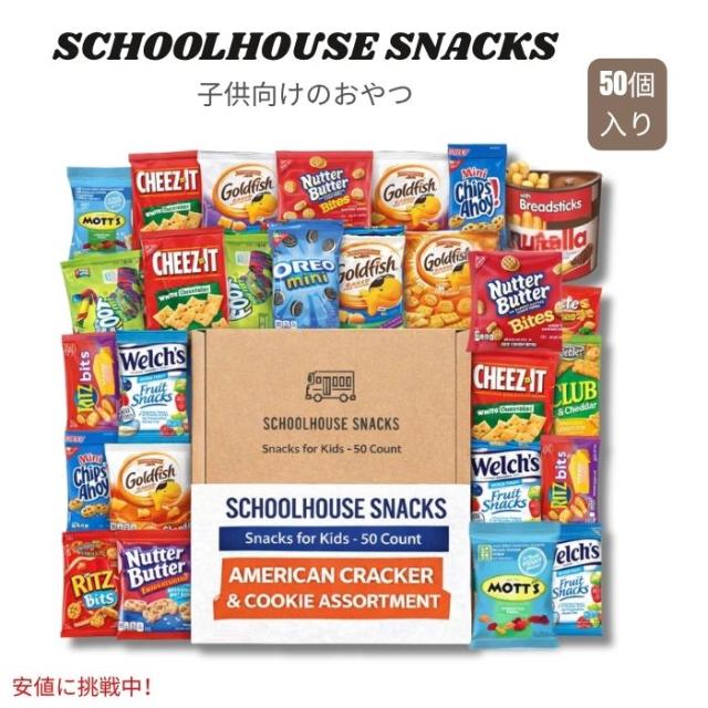SCHOOLHOUSE SNACKS スクールハウススナック - 子供向けスナック [アメリカンクラッカーとクッキーの詰め合わせ付き] - 50個入り Snack Box for Kids with American Cracker and Cookie Assortment