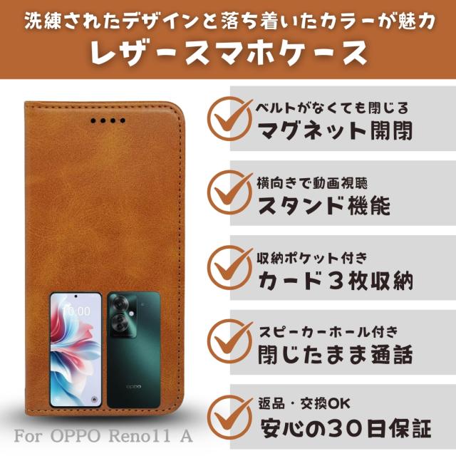 OPPO Reno11 A オッポ Reno11 A手帳型 高品質レザー 手帳 カバー スマホケース スタンド機能付き マグネット開閉 カード収納付き