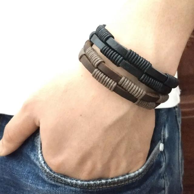 2連風 編み込みレザーブレスレット 1個販売 黒色の革 皮ブラック 茶色 ブラウン 手首 重ね付け 革紐 皮ひも メンズ レディース 彼氏 父の日 プレゼント ギフト 男性 ラップブレスレット