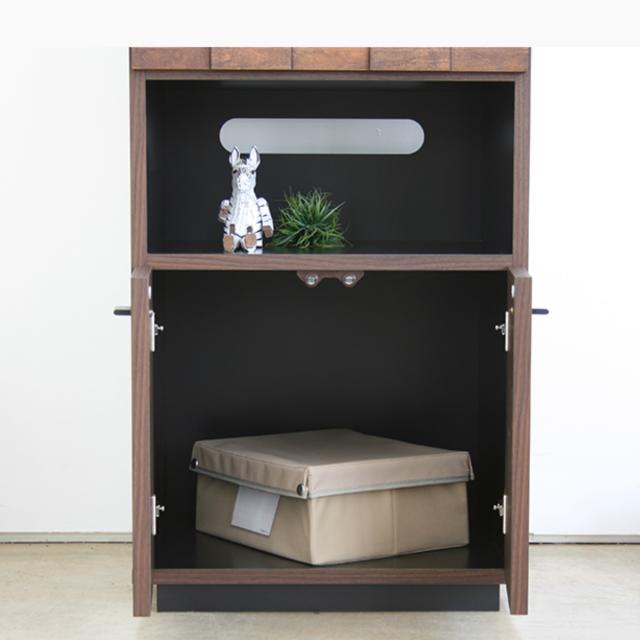 下部は扉付き収納で、日用品や小物をすっきりと収納できます。生活感を抑え、整った印象の空間を演出します。