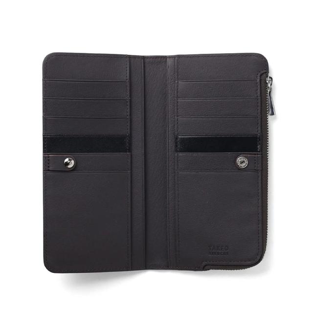 革の艶を生かした発色の良いカラーが魅力のタケオキクチの長財布。