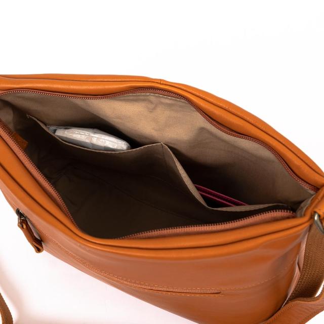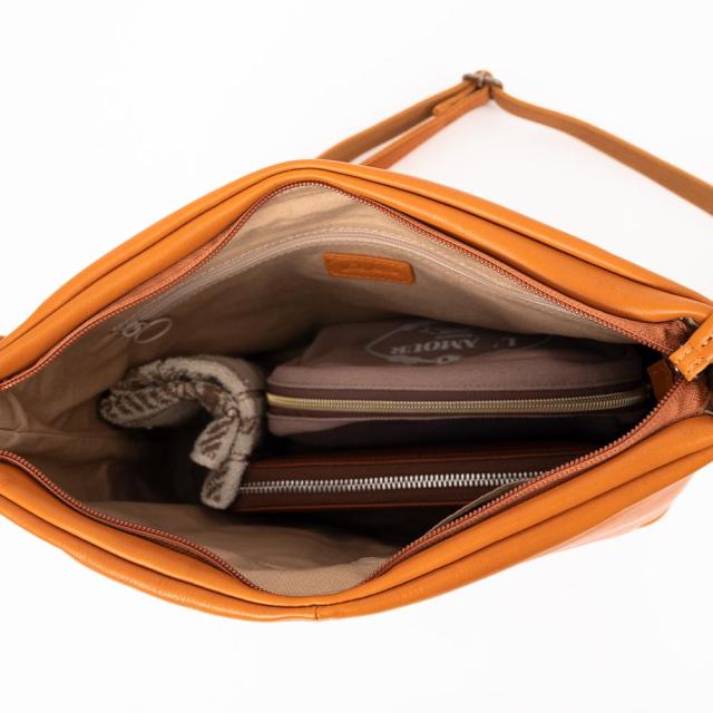 レザーながら約440gと軽量に仕立てており、中身が増えても軽やかにお持ちいただけます。ファスナー開閉なので、物の飛び出しも安心です。