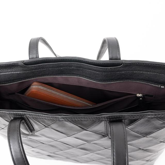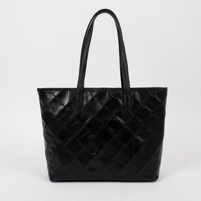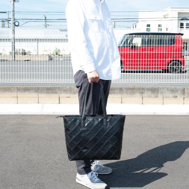 選び抜いた余り革を職人の手でパッチワークシートに仕立てた、味わい深いトートバッグです。