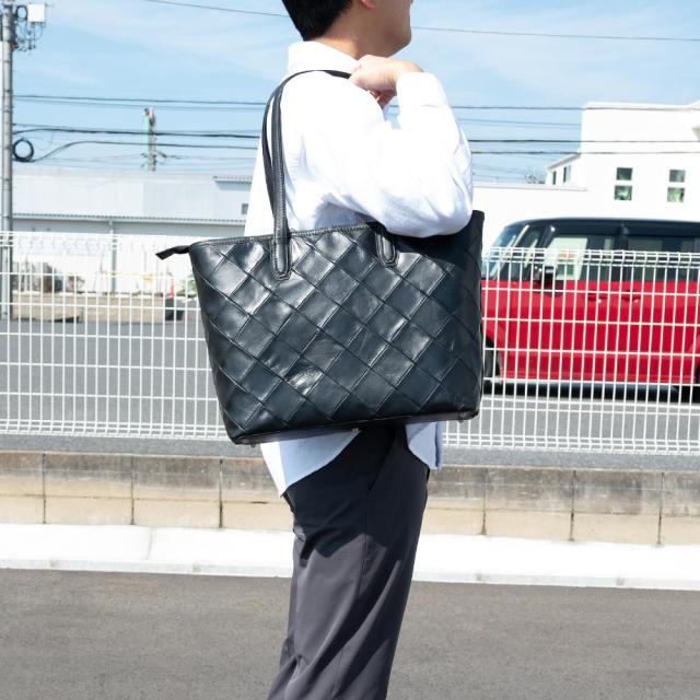 バングラディッシュの工場で一つ一つ丁寧に作り上げられる「JOYA」の本革トートバッグ。