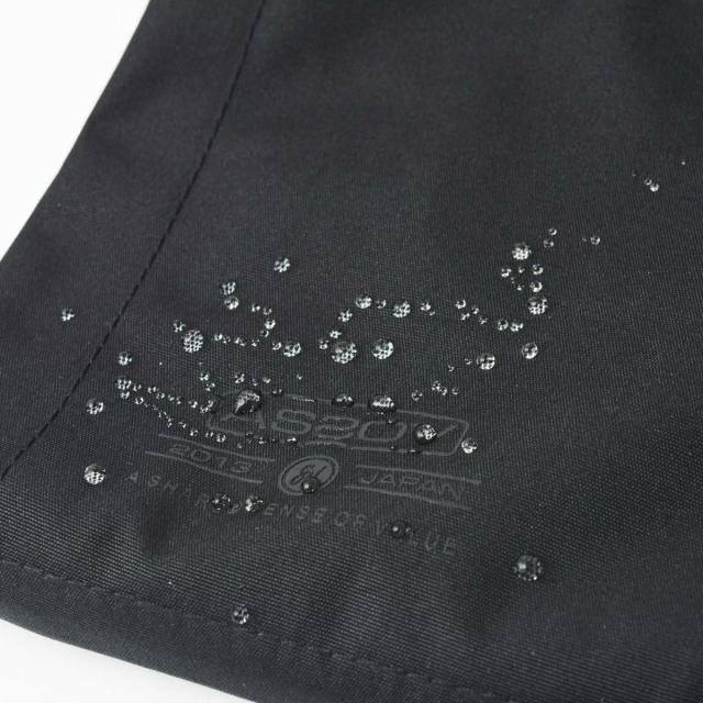 一般的な傘は耐水圧500mm以下なので、40倍以上のスペックです。コーティング系の防水素材に比べ、傷に強く、軽いのが特徴です。 前面の縫製部分には裏側にシームテープを圧着し、縫い目からの浸水を防ぎます。