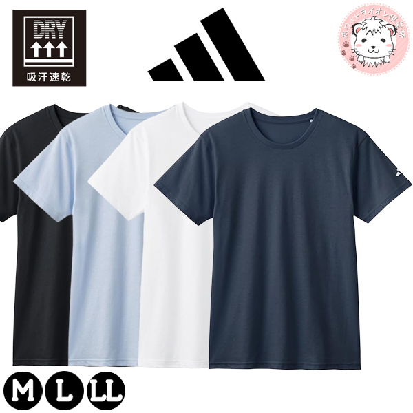 グンゼ adidas Tシャツ 半袖 クルーネック 綿100% M/L/LL | 天竺編み ロゴ メンズ 紳士 綿 下着 肌着 インナー APN013B GUNZE アディダス