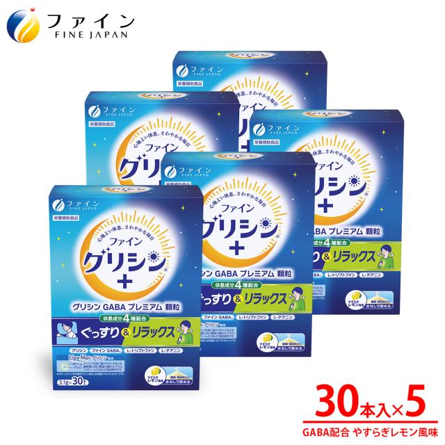 【リニューアル】グリシン GABA プレミアム顆粒 GABA テアニン ファイン 30日分 ×5箱 トリプトファン サプリ 休息 粉末 パウダー アミノ酸 健康食品 ファイン