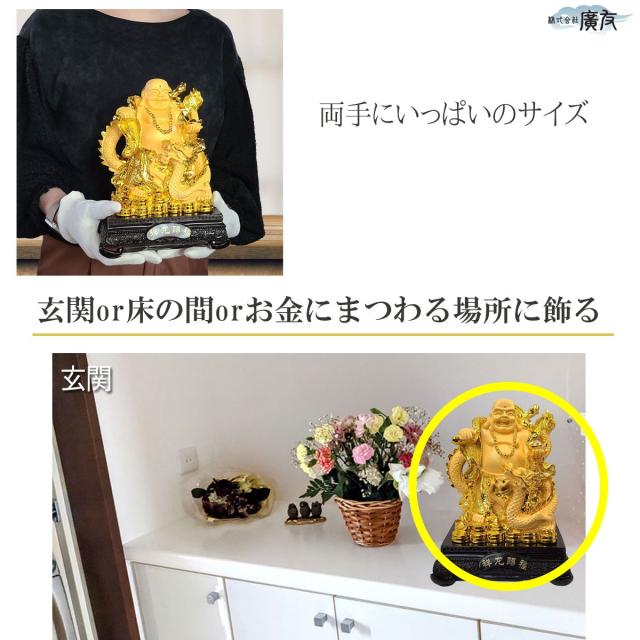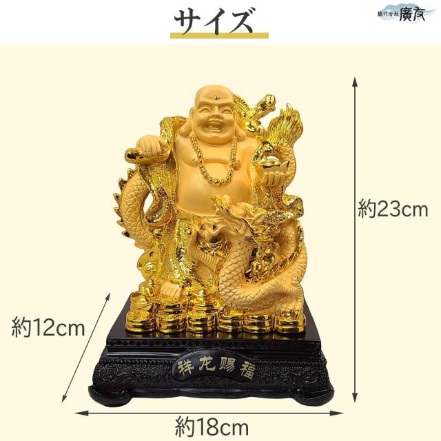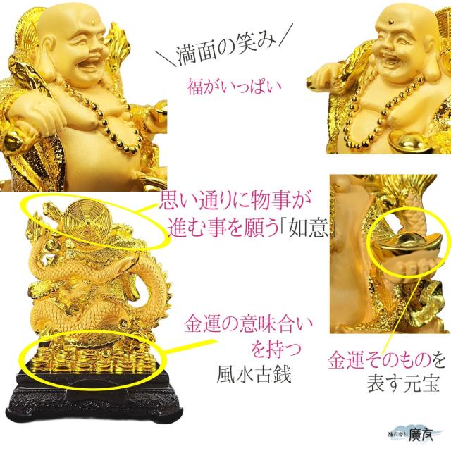 布袋様 布袋様置物 金運上昇 金運開運 金運アップグッズ 七福神 置物 風水グッズ 風水 風水インテリア ハッピーブッダ happy buddha statue 2026 (樹脂製招財龍上布袋大 砂金色) 送料無料