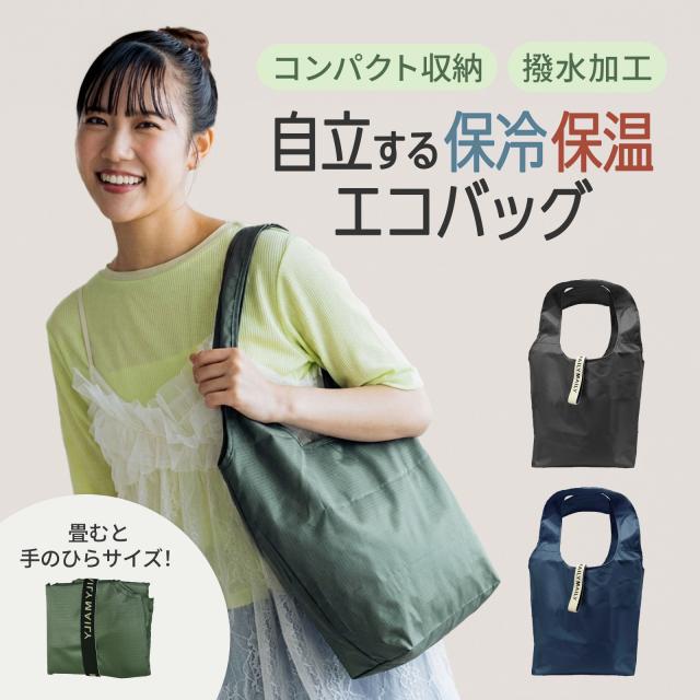 「MAILY MAILY」の保冷保温エコバッグは、買い物中に倒れない自立設計が最大の特長。荷物を入れるときも取り出すときもストレスなく使えます。