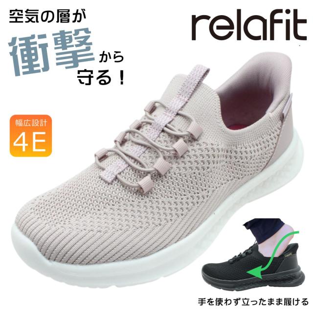 リラフィット relafit レディース RFM572 スニーカー ハンズフリー ウォーキングシューズ ゴム紐 幅広4E 軽量 歩きやすい 立ち仕事 手を使わ履ける ローカット 靴