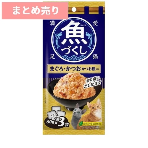 24個まとめ売り いなば 魚づくし まぐろ・かつお かつお節入り 60g×3袋 猫 キャットフード えさ ウェット ◆賞味期限 2027年10月