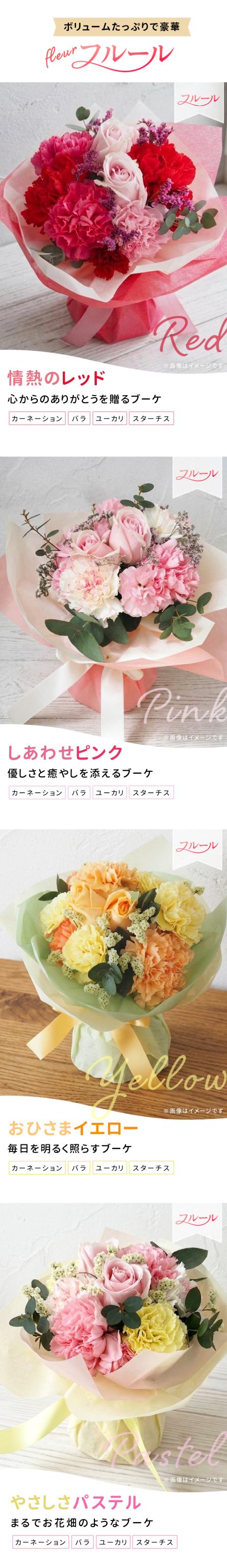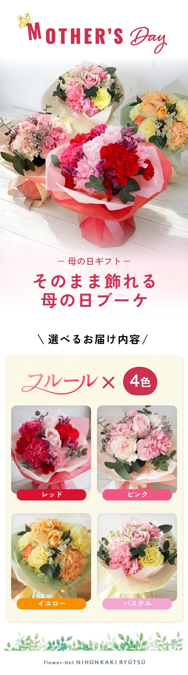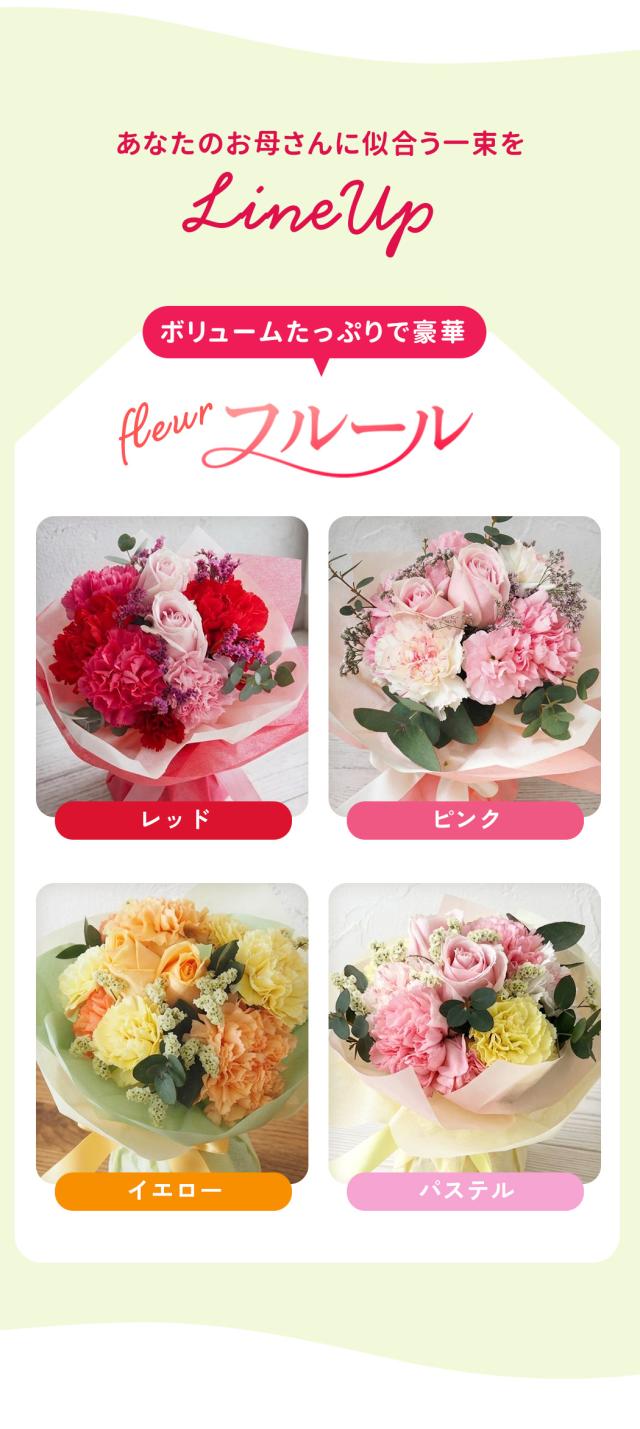 \ 早割 / 母の日 花束 選べる 花 カーネーション バラ 母の日ギフト 4種類 そのまま飾れる フラワーアレンジメント フルール 送料無料 可愛い 生花 フラワーギフト 日本花キ流通